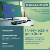 В Федеральную службу государственной статистики, действующую на территории Санкт-Петербурга и Ленинградской Области требуется Графический дизайнер
